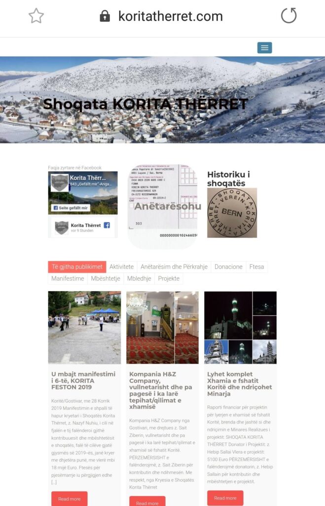 Faqja www.koritatherret.com është ngritur, përpunuar dhe përshtatur me kontribut të anëtarit të shoqatës, Kasam Selimit.