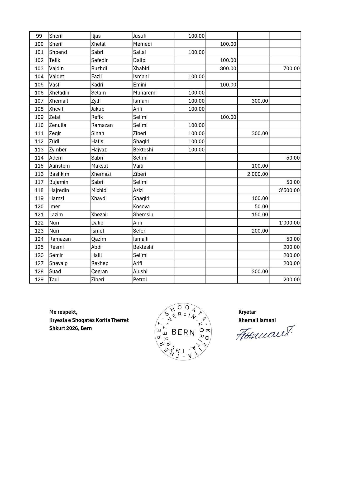 Kontributi juaj, qoftë financiar, moral apo organizativ, dëshmon për dashurinë që keni për vendlindjen dhe për unitetin që na bashkon. Falë jush, ne vazhdojmë të punojmë me përkushtim për ruajtjen e traditës, kulturës dhe zhvillimin e fshatit tonë.